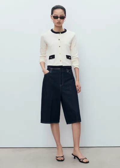 MANGO Contrasting Cotton Cardigan Ecru In White