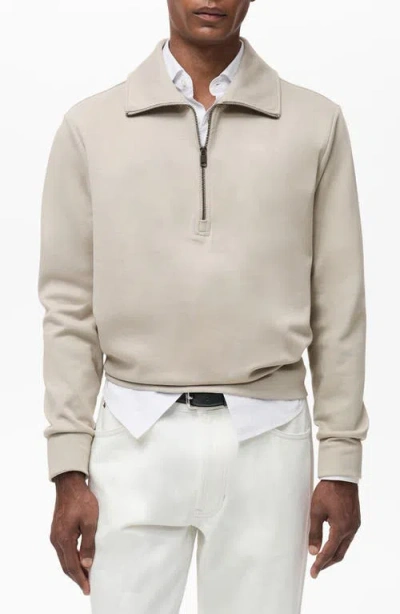 MANGO Cotton Blend Half Zip Sweatshirt In Ice Gray