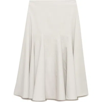 MANGO Cotton Mix Pleated Midi Skirt In Gray