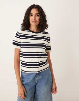 Tops by Mango Crew neck Short sleeves Striped pattern Regular fit