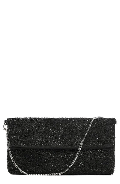 Glittering crystals light up this evening-ready handbag styled with a removable chain strap for easy wear.