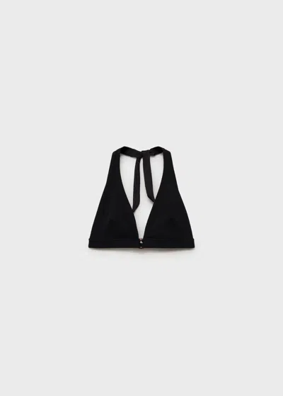 MANGO Decorative Ring Textured Bikini Top Black