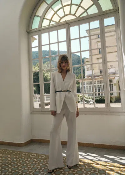 MANGO Double-breasted Suit Jacket In White