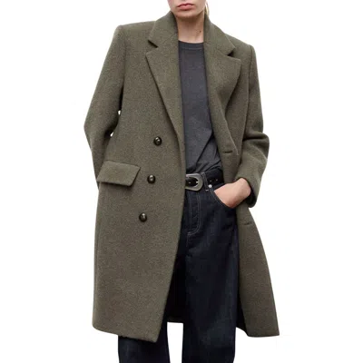 MANGO Double Breasted Wool Blend Coat In Green