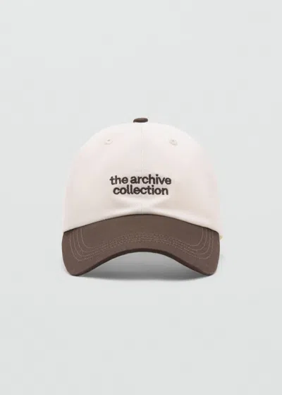 MANGO Embroidered Message Adjustable Baseball Cap In Brown