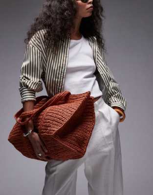 MANGO Extra Large Raffia Bag With Zip Thorugh Lining In Orange
