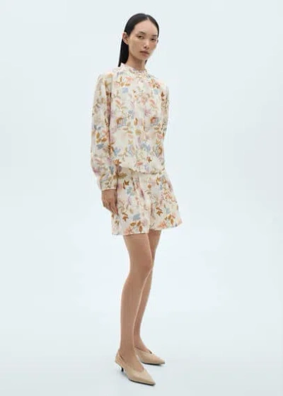 100% cotton fabric, Short design, Straight design, High waist, Floral print, Dart detail, Concealed button, hook and zip fastening, Total look