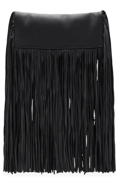 Swingy fringe brings dimension and movement to this rich leather clutch featuring a slender profile perfect for storing your essentials on your next night out. Magnetic-snap flap closure Interior wall pocket Cotton lining Leather Imported