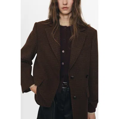 MANGO Houndstooth Wool Blend Blazer In Brown