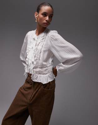 Lace Insert Ruffle Blouse In White