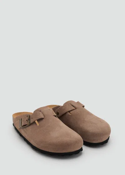MANGO Kids' Leather Clogs With Buckle Medium Brown