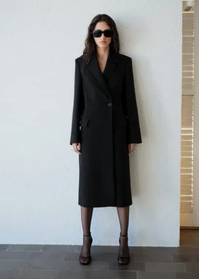 Long Structured Wool Coat Black