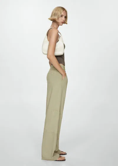 MANGO Lyocell Trousers With Adjustable Drawstring In Khaki