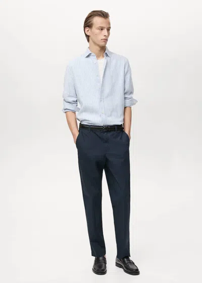 MANGO MAN Cotton Pants With Adjustable Drawstring Dark Navy
