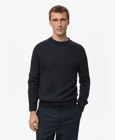 MANGO Men's Structured Wool-blend Knitted Sweater In Blue