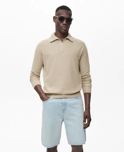 MANGO Men's Zipper Collar Microstructure Sweater In Neutral