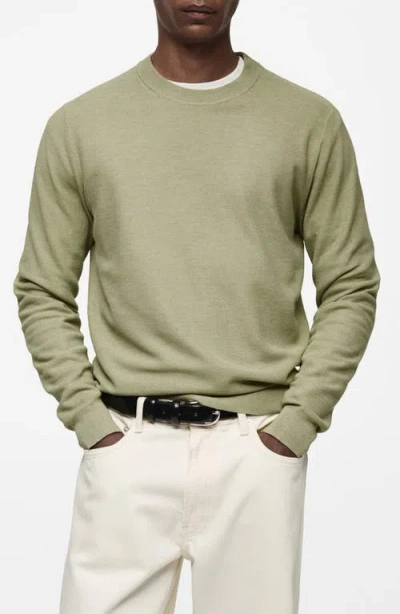 MANGO Microstructure Crewneck Sweater In Green Apple