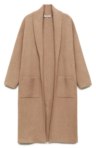 Wrap yourself in cozy style with this Mango's oversized knitted coat. The medium knit fabric and long sleeves keep you warm, while the open design allows for easy layering. With classic lapels and handy patch pockets, it's perfect for effortless everyday chic.