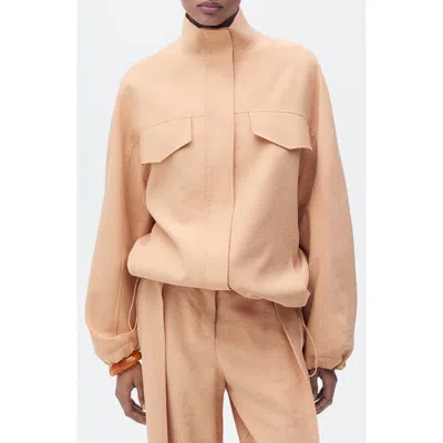 MANGO Oversize Stand Collar Jacket In Neutral