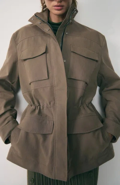 MANGO Oversize Stand Collar Parka In Medium Brown