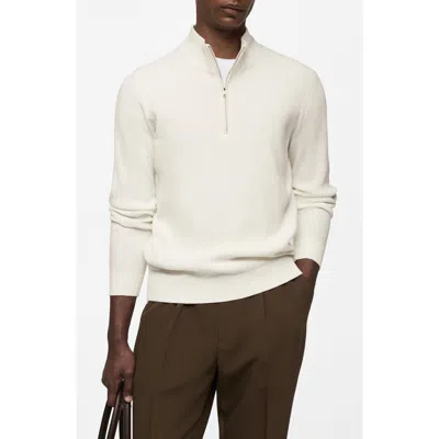 MANGO Perkins Half Zip Sweater In White