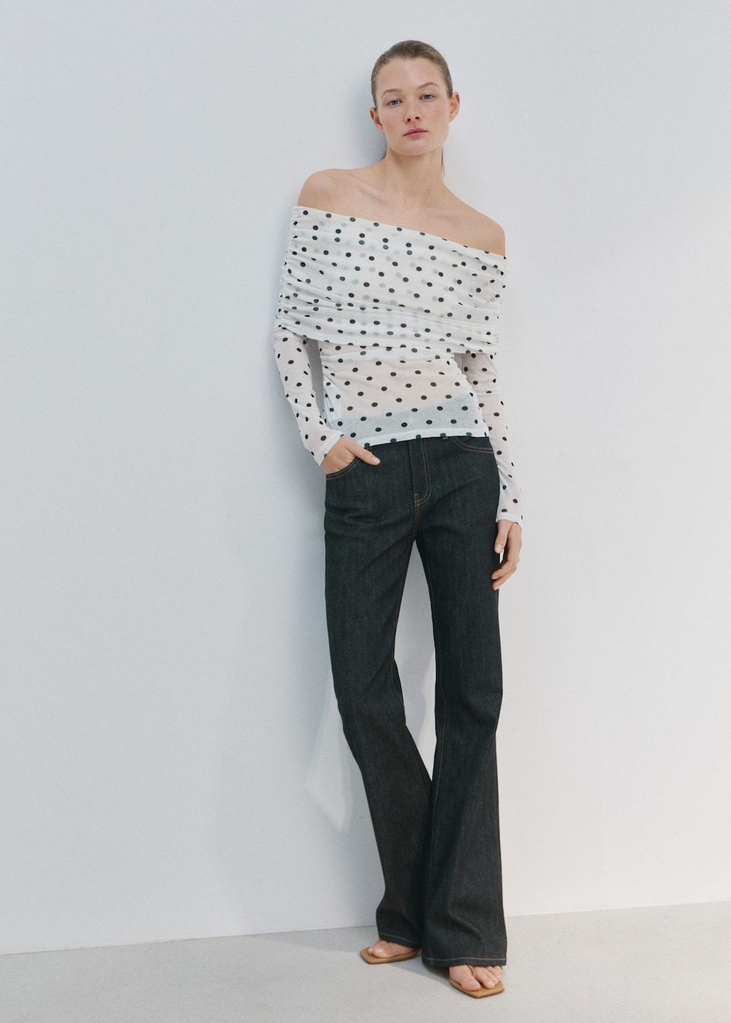 Bring playful charm with Polka Dot Strapless Top from Mango. Made from woven fabric, the top features straight cut, polka dot print, bandeau neckline, long sleeves and no fastening. With a history spanning four decades, Mango is one of Europe's leading fashion brands. From Barcelona, on the banks of the Mediterranean, they delight the world with their fashion proposal and lifestyle. Mango's creative team works every day to translate fashion trends into their own language, which they deliver to customers in a personalized way while paying attention to detail.