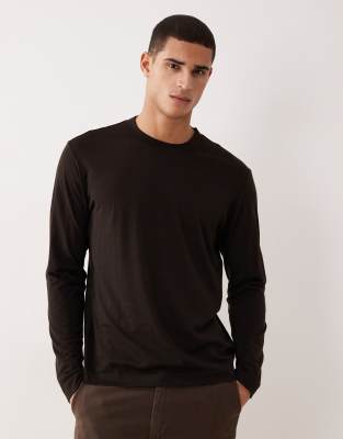 Premium Wool Mix Long Sleeve T-shirt In Brown