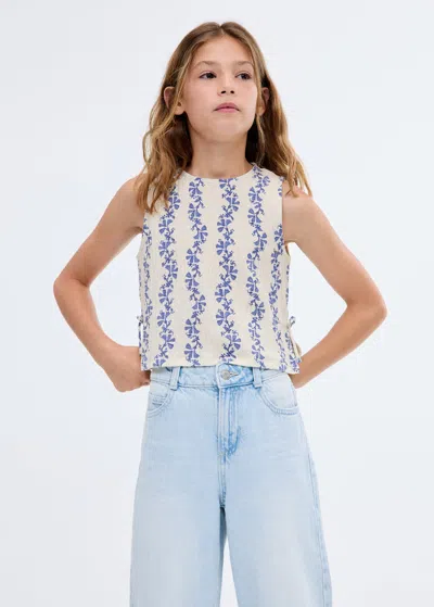 Bambula fabric, Printed design, Floral print, Round neck, Sleeveless, Side slits, Bow details on the sides, Button closure at the back