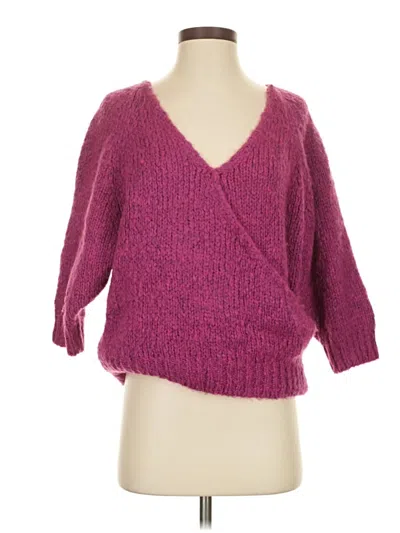 Mango Pullover Sweater, Size: Small. Item Details: Pink, Tweed Pattern, Plunge Neckline, 3/4 Sleeve, Glitter, Women's Tops