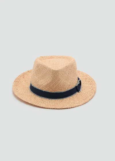 MANGO Raffia Hat With Denim Bow Beige