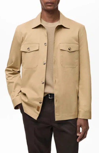 MANGO Regular Fit Cotton Blend Button-up Overshirt In Burgundy