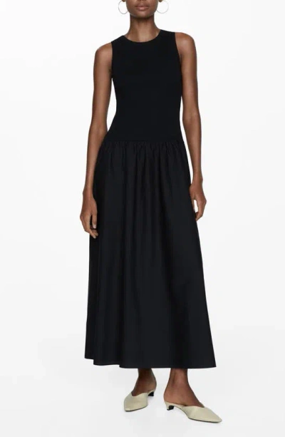 MANGO Valvi Mixed Media Maxi Dress In Black