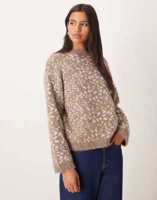 Sweaters & Cardigans by Mango Round neck Long sleeves Drop shoulders Deer print Ribbed trim Relaxed fit