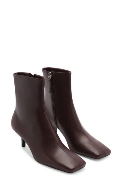 MANGO Squared Toe Leather Ankle Boots Chocolate