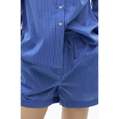 MANGO Stripe Cotton Blend Drawstring Shorts In Blue