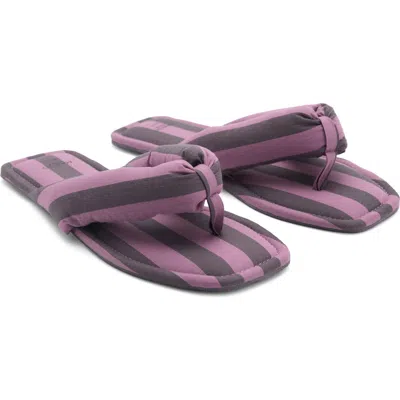 Well-padded and delightfully puffy, this flip-flop wrapped in striped cotton canvas brings exceptional comfort to any sunny-day outing or lazy day indoors. Its plumped-up construction makes it a great where-did-you-get-those conversation starter, while its soft feel and generous cushioning make every step feel like a hug from a friend. Textile upper and lining/synthetic sole Imported