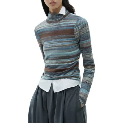 Blurred stripes mesmerize on this soft knit turtleneck that's ideal for layering from work to play. Turtleneck Long sleeves 62% viscose, 38% polyester Hand wash, line dry Imported