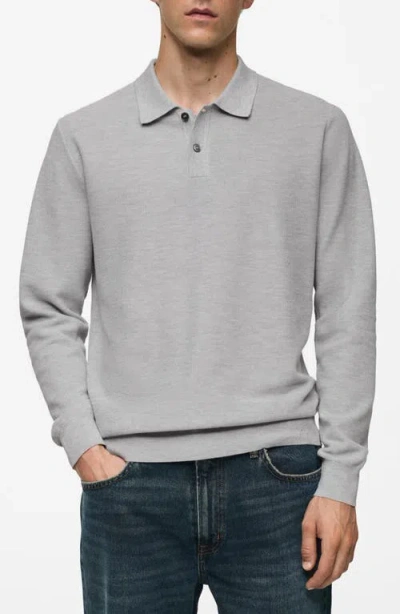 MANGO Structured Long Sleeve Polo Top In Medium Heather Gray