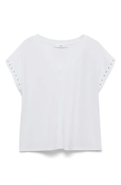 MANGO Stud Accent Cotton V-neck T-shirt In White