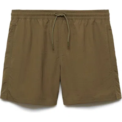 Handy pockets hold your essentials while you soak up the sun in these drawstring-waist swim trunks. Elastic/drawstring waist Side-seam pockets; back flap-patch pocket Lined 100% polyamide Dry clean Imported