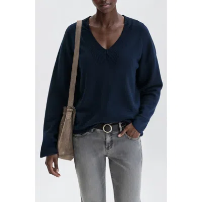 Relaxed Fit V-neck Cotton Sweater In Blue