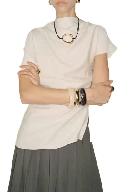MANGO Textured Drape Neck Top In Ecru