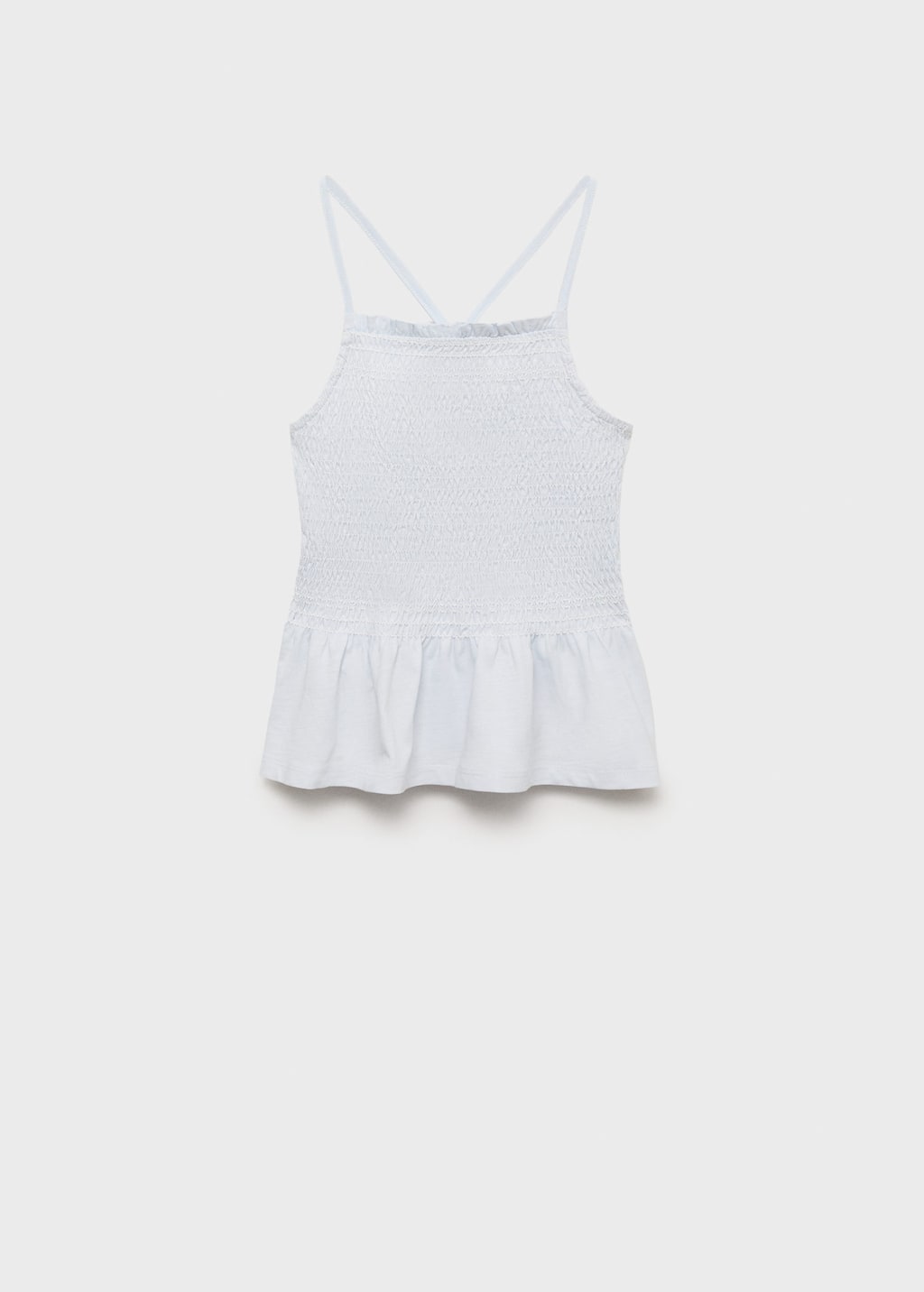100% cotton fabric, Straight design, Honeycomb pattern, Straight collar, Thin straps, Open back, Finish with bottom ruffle