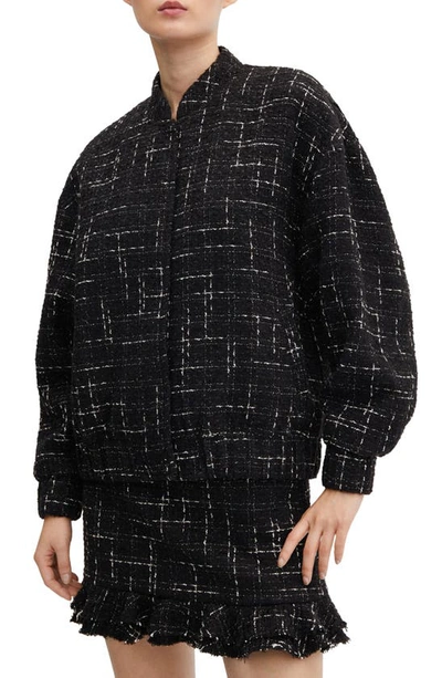 MANGO Tweed Bomber Jacket In Black