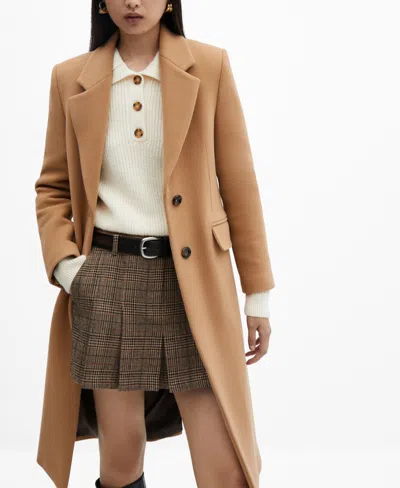 MANGO Virgin Wool Blend Coat In Medium Brown
