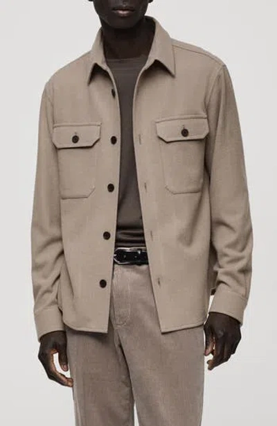 MANGO Wool Blend Flannel Overshirt In Neutral