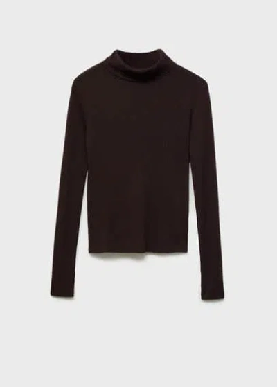 MANGO Wool Blend Turtleneck Sweater Chocolate