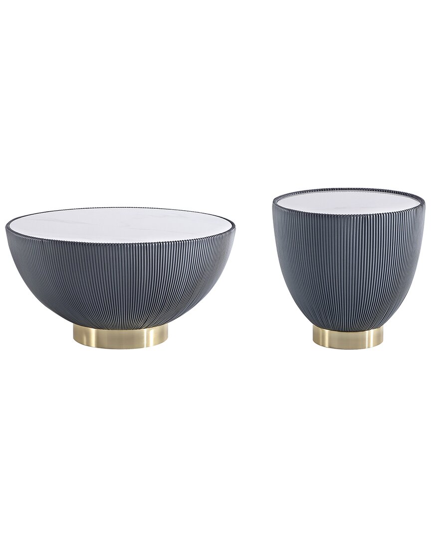 Part Of The Anderson Collection Color/Finish: Grey Manhattan Comfort Modern Anderson Coffee Table And End Table 2.0 Upholstered In Grey Leatherette With Ceramic Faux Tabletop - Set Of 2 Measurements: Coffee Table: 28.15In X 14.17In X 28.15In; End Table: 18.43In X 17.72In X 18.43In Stainless Steel Wipe Clean Assembly Required Imported