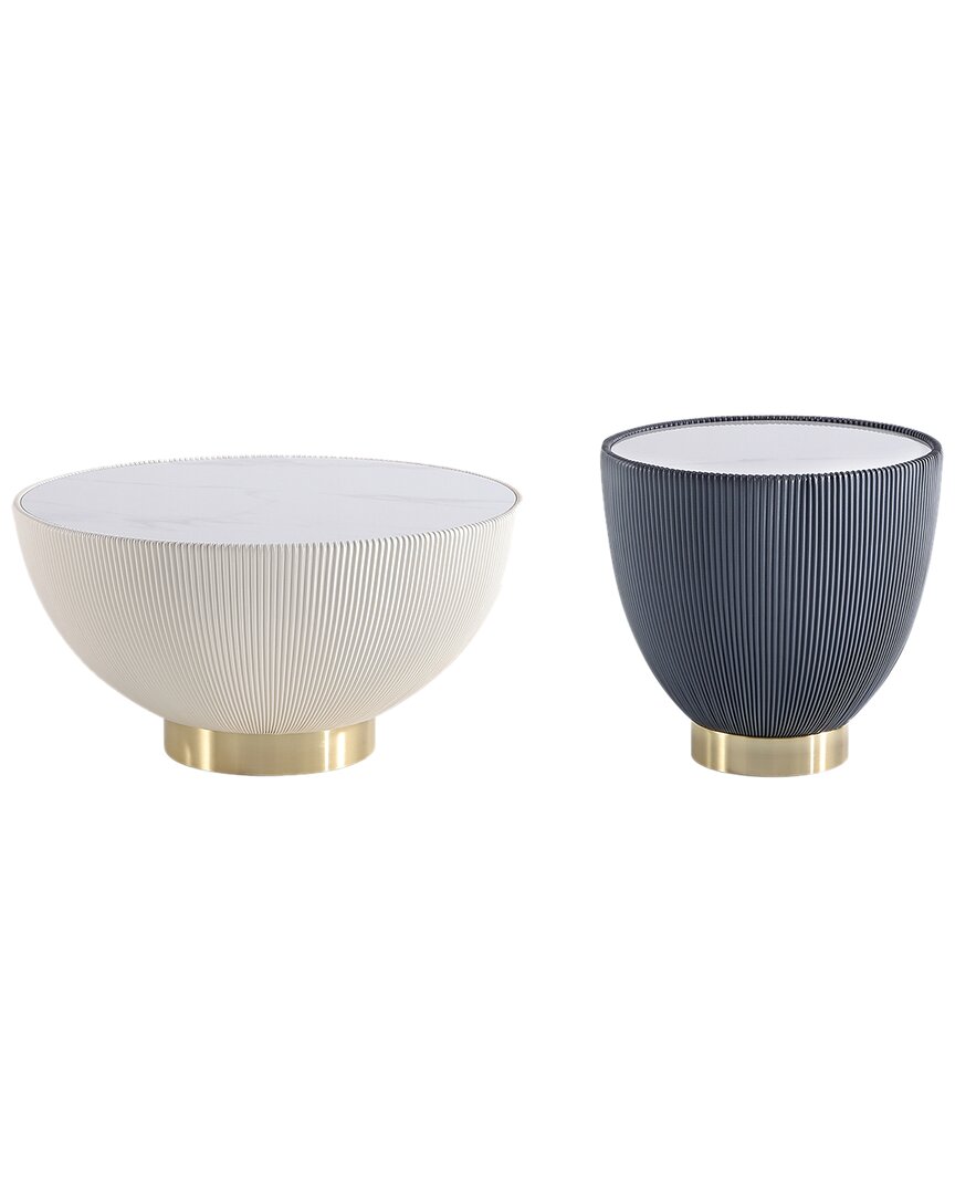 Part Of The Anderson Collection Color/Finish: Cream Manhattan Comfort Modern Anderson Coffee Table And End Table 2.0 Upholstered In Cream Leatherette With Ceramic Faux Tabletop - Set Of 2 Measurements: Coffee Table: 28.15In X 14.17In X 28.15In; End Table: 18.43In X 17.72In X 18.43In Stainless Steel Wipe Clean Assembly Required Imported