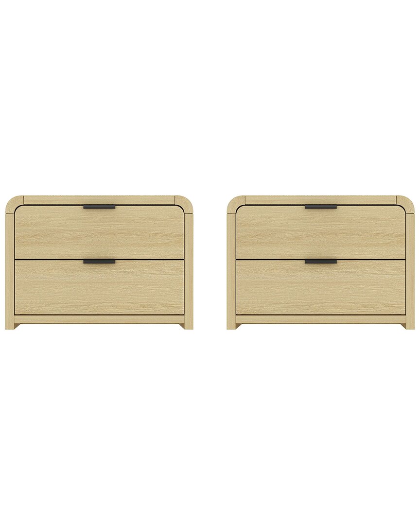 Color/Finish: Natural Oak And Black Design Details: Modern Nightstand For Bedroom And Living Room Use. Set Of 2. Upon Assembly, Nightstand Dimensions Measure: 28 In. Length, 20 In. Height, 17 In. Depth. Includes 2 Drawers With .75 Extension. Horizontal Glam Drawer Handles Made Of Metal With A Choice Of Black Or Gold Finish. Crafted With Smooth Solid Wood Rounded Corners And A Minimalist Silhouette For A Modern Yet Classic Appeal. Made Of High Quality Mdf With Mix Of Solid Wood. Perfect For Bedside Storage, Lamps Or Display Items. Home Assembly Required. All Hardware Included Measurements: Upon Assembly, Nightstand: 28In X 20In X 17In Mdf Mdf/Mdp: Cleaning: Wipe With A Damp Cloth, Avoiding Excessive Moisture. Avoid: Harsh Chemicals Or Abrasive Cleaners That Can Damage The Surface. Care: Keep Away From Excessive Humidity, As Product Can Swell Or Warp When Exposed To Water Or Moisture. Protection: Use Coasters Or Mats To Avoid Scratches Or Stains. Imported Contents Of Set: Nightstand - Set Of 2